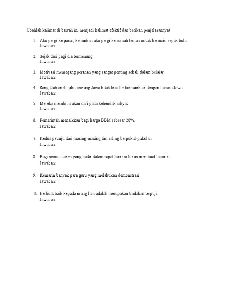 Contoh Soal Kalimat Efektif dan Pembahasannya